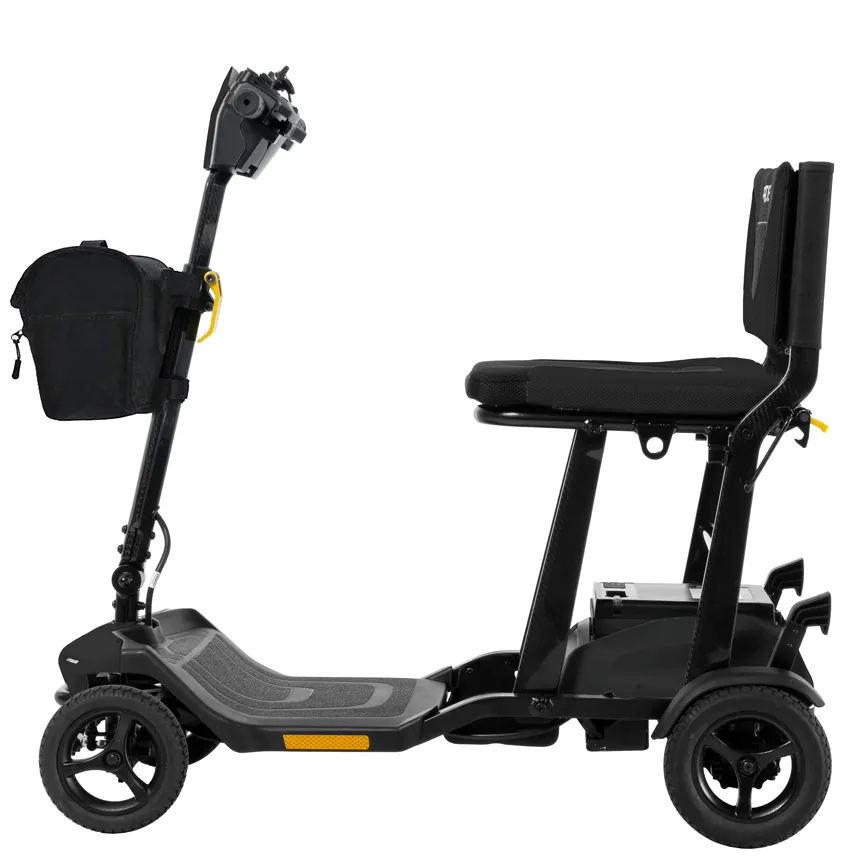 Unlike many travel scooters that require multiple steps and disassembly for transport, the Go Go Super Portable Scooter folds into a compact form in just three quick steps. Its articulated front end provides greater stability, ensuring a smooth and comfortable ride. The lithium-ion battery technology extends travel distances up to 10 miles per charge, making it a dependable and efficient mobility aid. Backed by Pride Mobility’s trusted reputation for quality and innovation, this scooter is an exceptional choice for those seeking a lightweight, durable, and travel-friendly mobility solution.