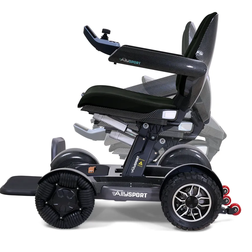 With a comfortable padded seat, adjustable armrests, and easy-to-use joystick controls, the Ally Sport ensures a personalized, user-friendly experience. The foldable frame and lightweight design make transport and storage simple, offering true portability without sacrificing performance.