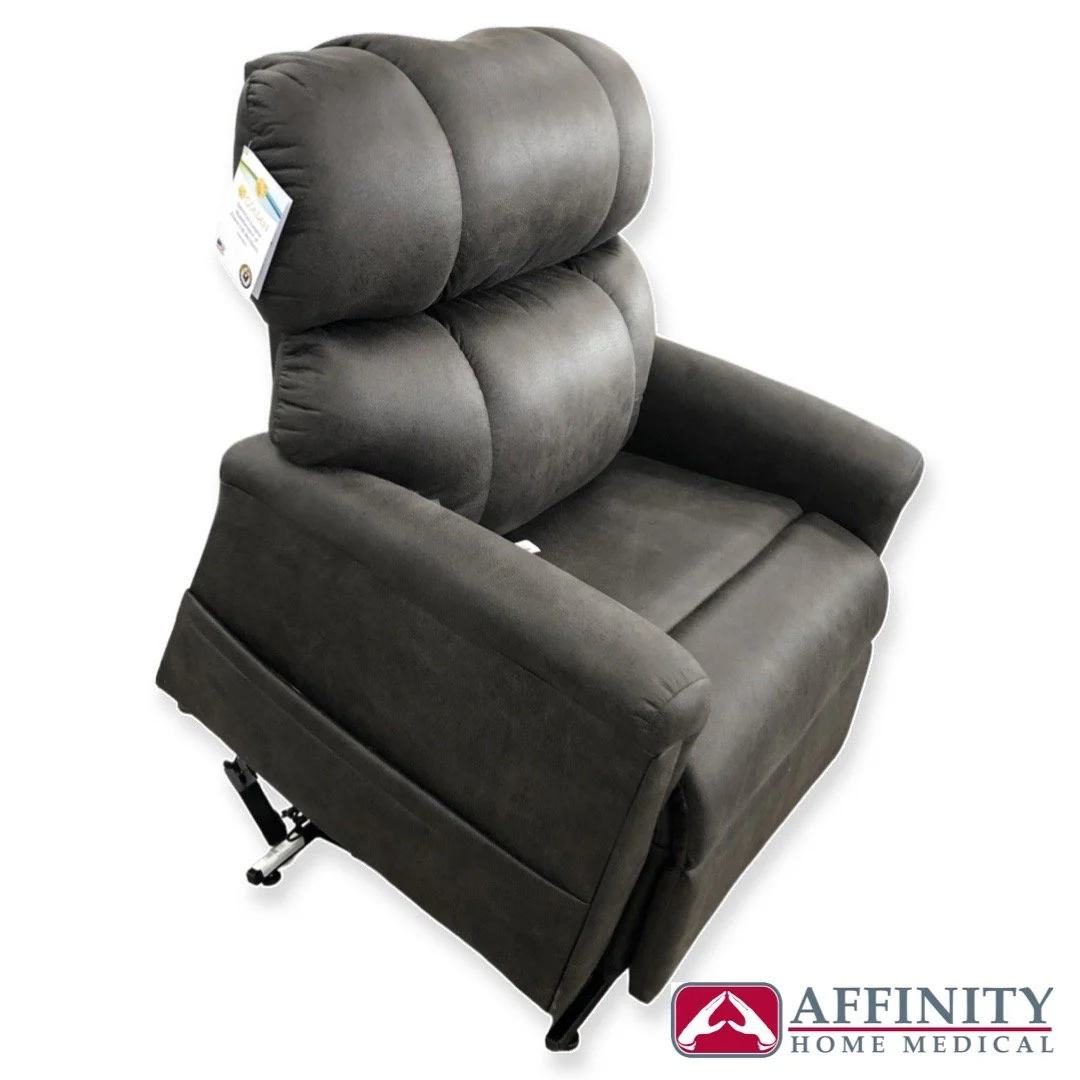 Golden has re-imagined the structure of this recliner's backrest by strategically placing its seams away from load bearing areas of your back. The seams were designed to support an ultra plush head and lumber area that flows down the middle of the backrest to relieve spinal pressure. This new design support allows the PR-535's padding to naturally form to the shape of your back, bringing you one step closer to cloud-like comfort. Golden extended the length of the arms and added additional padding for more comfortable entry and exit from the chair. This Heavy Duty Maxicomforter has a weight capacity of 500 lbs. and a seat width of 27”. Dual motors and an extra-sturdy frame provide upgraded durability.