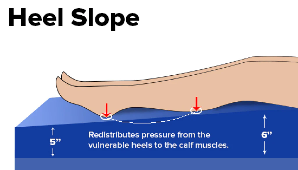 - The heel section is sloped with patented LuraQuilt foam, offloading pressure from vulnerable heels.
